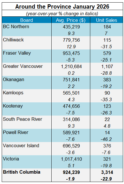 “British Columbia’s housing market kicked off 2026 with its second weakest January since 2016, with sales in almost every region falling short of historical averages,” said BCREA Chief Economist Brendon Ogmundson. “Despite a slow start, we expect stable rates and improved affordability conditions to release pent-up demand with sales picking up over the course of 2026.”Active listings in January 2026 climbed to 32,626 units, a 5.6 per cent increase from the same month last year. Weak sales activity over the past several quarters have led to an accumulation of inventory, which should accommodate demand pressures in the short term. However, dampening sentiments concerning new home construction in BC leave the housing market vulnerable to long-term demand growth, a pattern which will be monitored over the next few years.