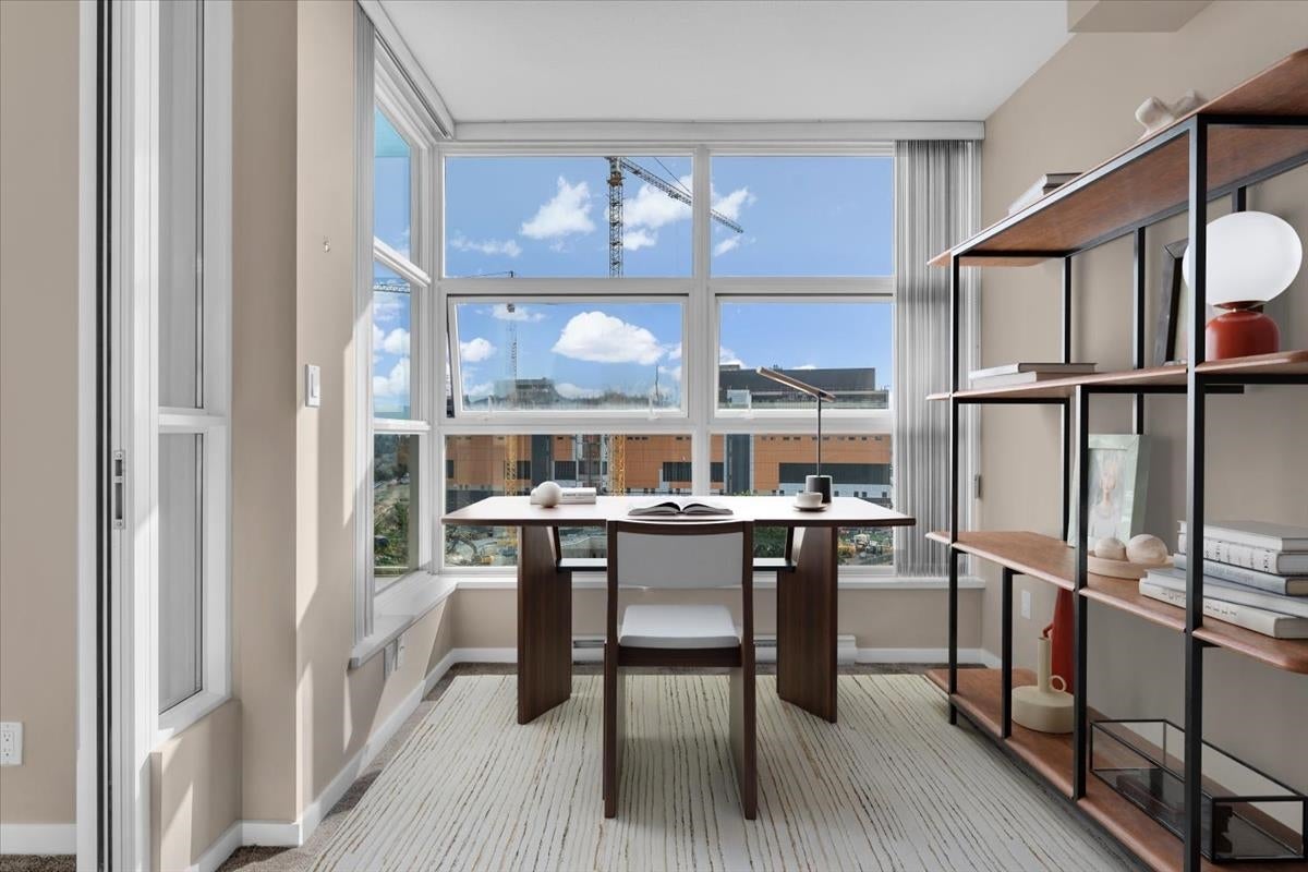 This spacious 847 sq.ft. north/east-facing home offers 1 bedroom plus a versatile den/sunroom & 1 bathroom in a bright, open layout. Large windows wrap the corner unit, filling the space with natural light & showcasing views of the city skyline & North Shore mountains. The kitchen features granite counters & plenty of workspace, while the den provides a perfect spot to enjoy views or have a generous office space. The Bosa-built Sussex at Citygate is a well-cared-for building with amenities including a fitness centre, billiards lounge, bike storage, parking & storage locker. Ideally located steps to some of the best restaurants in the city the Seawall, SkyTrain, Olympic Village, AquaBus, the future St. Paul’s Hospital, both stadiums, Yaletown & Chinatown.