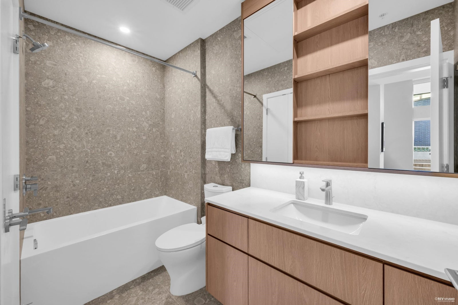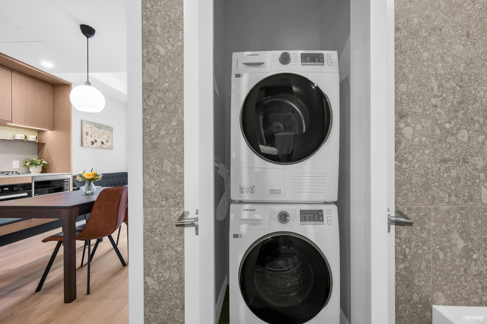 Located in Vancouver’s sought-after Cambie Corridor, Lina at QE Park is a 6-storey concrete building next to Queen Elizabeth Park. This air conditioned ground-level 1 bed and 1 bath home features a spacious 229 sq ft private patio, ideal for outdoor living. Interior highlights include natural oak hardwood floors, Caesarstone countertops and backsplash, Miele appliances, and a modern walk-through shower with Hansgrohe fixtures. Enjoy year-round comfort with central A/C and access to a private resident lounge with an entertainment patio. Steps to Oakridge Centre and the Canada Line. 1 parking and 1 Locker included. Don’t miss this rare opportunity! Open House Aug 31 (Sun) 2-4pm.