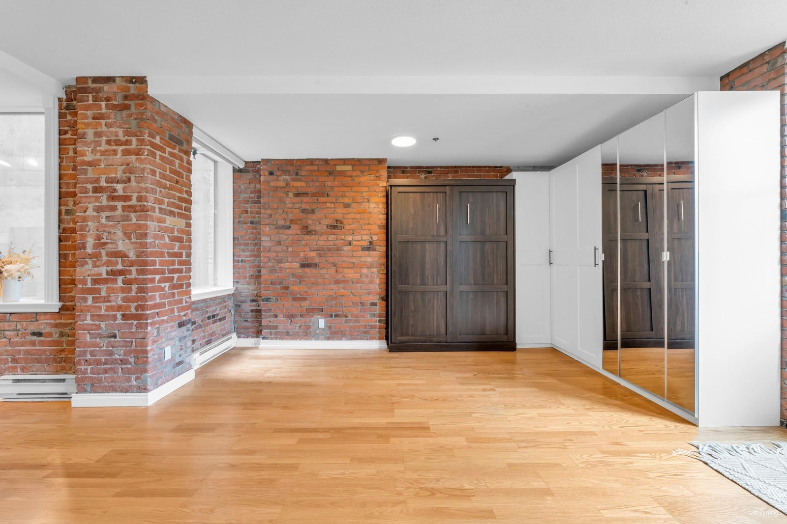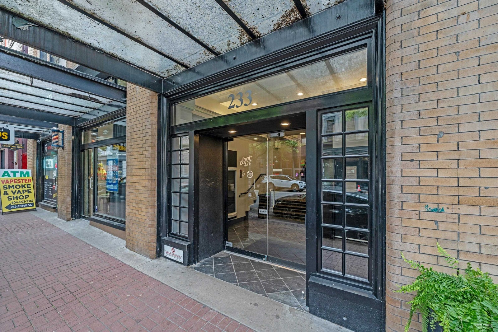 Abbott place beautifully blends Gastown's historial charm with modern urban living. Nestled in the heart of Gastown, one block from popular lively Water Street and close to West Cordova, it's a stone throw from top cafes, galleries, restaurants and shops! This home is tucked in on a beautiful tree lined street, located near cultural spots, Vancouver film school, SFU contemporary arts school, dr.sun yat-sen garden and many more. Updates include In-suite laundry, newly installed storage system, Murphy bed, smart electronic blind system, lighting and fresh new paint. Walk Score 97/100 and a mere 6min walk to Waterfront station. Take a stroll to Canada Place, Coal Harbour, Financial District, Stanley Park! The building and unit are both well maintained and ready to be moved in!